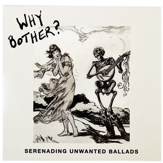 Why Bother?: Serenading Unwanted Ballads 12” (Feel It Records) Serenading Unwanted Ballads is the latest full-length from this punk band from Iowa on Feel It Records, whose 2023 album A City of Unsolved Miseries got a Record of the Week nod at Sorry State. I hesitate to mention how prolific Why Bother? is because it might make you skeptical about the quality of any individual release… how could a band release so much music and have it all be good? However, as with their similarly prolific label-mates the Cowboys and Class, I hear no appreciable dip in quality across their many records. And holy crap, do Why Bother? have a lot of records, having put out at least eight albums since 2021. Not only did A City of Unsolved Miseries arrive barely a year ago, but also there’s an entire album, Calling All Goons, that came out between that and Serenading Unwanted Ballads. I am not privy to Why Bother?’s inner workings, but I’m guessing you can chalk up their quickly growing discography to some combination of these factors: 1. there probably isn’t shit else to do in Mason City, Iowa; 2. Why Bother? doesn’t play live (though there is one track on this album that says it was recorded live), and 3. they have a fucking ton of ideas. The latter is apparent on Serenading Unwanted Ballads, which has a ton of variety. There are tracks that, like many of my favorite Why Bother? songs, sound like gritty punk/pop in the vein of mid-period Husker Du (the opener “Nullity,” the aforementioned live recording of “Frothy Green”). A bunch of others—many of these among the record’s best—sound like post-punk underground pop music, like “Until” with its late 70s Manchester guitar line or the beautiful “High as the Heavens,” which sounds like it could have been in a John Hughes movie. “Your Love Will Die” has a cool 60s-sounding psychedelic surf vibe, while “Some Don’t Dance” is minimal and jittery a la the Urinals. And like any great band, Why Bother? takes these different ideas and runs them through their filter in a way that makes everything sound coherent. If you’re a fan of pop-based but adventurous punk, check out Why Bother? Don’t let their discography intimidate you… dive in here, and if you like it, sleep comfortably knowing there’s plenty more to hear.