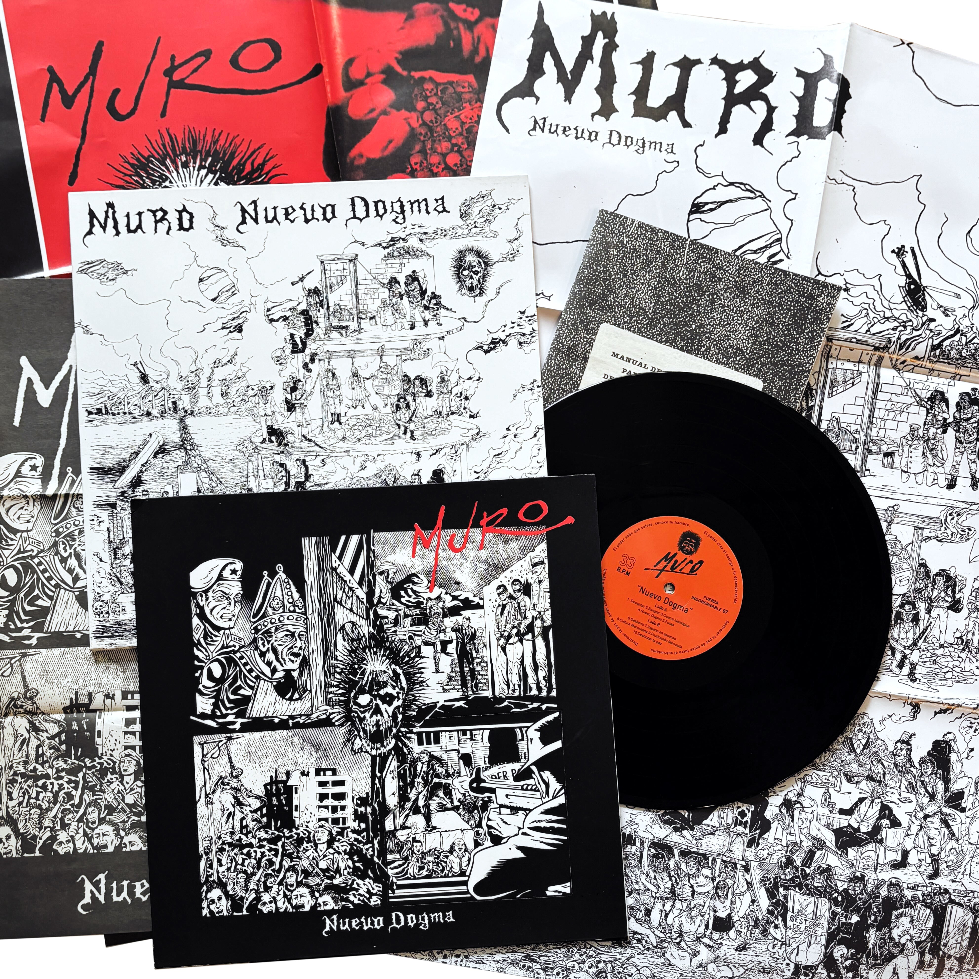 Muro: Nueva Dogma 12" (Fuerza Ingobernable Discos) Bogota, Colombia’s Muro returns with their long-awaited 3rd album, Nueva Dogma. I think everyone who encounters Muro, whether it’s live or through their recordings, agrees they are a special band. The most striking aspect of their music for me remains the passion and intensity they capture on their recordings. As thousands of lackluster albums across the history of recorded music prove, even a great band can have trouble capturing their energy on tape, but that has never been an issue for Muro, whose electricity transmits even through the very raw recordings they favor. Nueva Dogma continues that pattern, but while the presentation is primitive, the songs themselves are anything but. Sure, there are plenty of short, frantic riffs that will tickle the fancy of anyone who knows the rewards of exploring the 80s international hardcore canon, but Nueva Dogma is also a notably musically progressive record, with Muro exploring a wide range of riffs, styles, grooves, and textures across its ten songs. In particular, the lead guitarist brings a lot to Nueva Dogma, which is spiced with a thrilling mix of catchy, sometimes quite melodic licks. While the grimy presentation and chaotic performance disguise it, some of these tracks would probably even qualify as melodic hardcore, at least on the level of the musical composition. That griminess of presentation is an important part of Muro’s trip they don’t want you to miss, though. As you may have noticed, Nueva Dogma’s music is nowhere to be found online. Instead, in order to hear this remarkable record, you need to access the punk DIY network that has propagated this self-made artifact across the world. With multiple inserts, a ton of cool illustrations, and packaging handmade in the band’s home country of Colombia, Muro’s effort to bring something of their world into the homes of everyone who buys Nueva Dogma makes for an engrossing experience that elevates what would have been, under any circumstances, a truly noteworthy hardcore punk record.