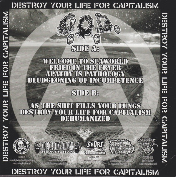 Tracklist: A1. Welcome To Seaworld , A2. Fried In The Fryer , A3. Apathy Is Pathology , A4. Bludgeoning Of Incompetence , B1. As The Shit Fills Your Lungs , B2. Destroy Your Life For Capitalism , B3. Dehumanized