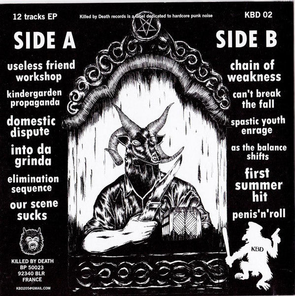 Tracklist: A1. Useless Friend Workshop, A2. Kindergarden Propaganda, A3. Domestic Dispute, A4. Into Da Grinda, A5. Elimination Sequence, A6. Our Scene Sucks, B1. Chain Of Weakness, B2. Can't Break The Fall, B3. Spastic Youth Enrage, B4. As The Balance Shifts, B5. First Summer Hit, B6. Penis 'n' Roll