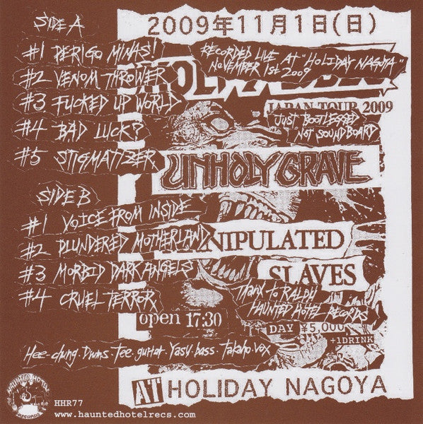 Tracklist: A1. Perigo Minas!, A2. Venom Thrower, A3. Fucked Up World, A4. Bad Luck?, A5. Stigmatizer, B1. Voice From Inside, B2. Plundered Motherland, B3. Morbid Dark Angels, B4. Cruel Terror