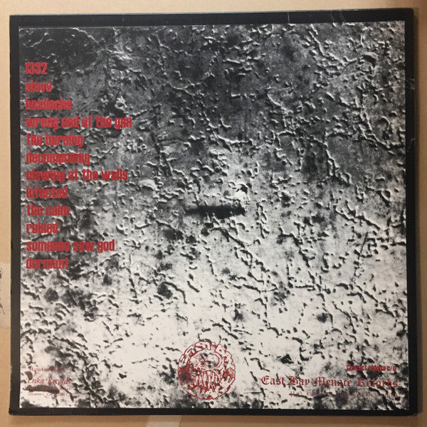 Tracklist: A1. 1332, A2. Slave, A3. Headache, A4. Wrong End Of The Gun, A5. The Burning, A6. Decomposing, B1. Clawing At The Walls, B2. Infected, B3. The Calm, B4. Ruined, B5. Someone Saw God, B6. Dormant