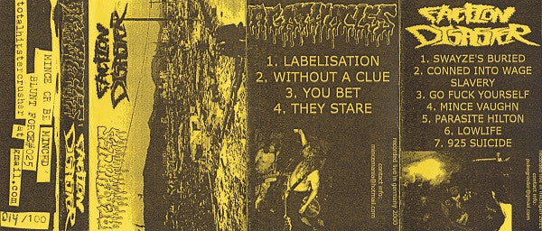 Tracklist: A1. Labelisation, A2. Without A Clue, A3. You Bet, A4. They Stare, B1. Swayze's Buried, B2. Conned Into Wage Slavery, B3. Go Fuck Yourself, B4. Mince Vaughn, B5. Parasite Hilton, B6. Lowlife, B7. 925 Suicide