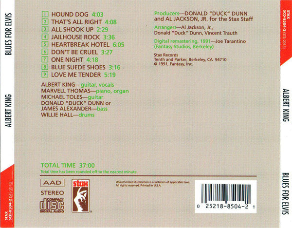 Tracklist: 1. Hound Dog, 2. That's All Right, 3. All Shook Up, 4. Jailhouse Rock, 5. Heartbreak Hotel, 6. Don't Be Cruel, 7. One Night, 8. Blue Suede Shoes, 9. Love Me Tender