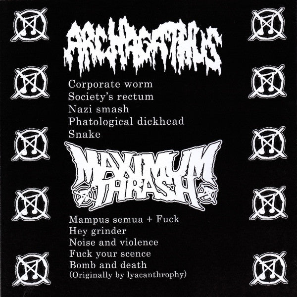 Tracklist: A1. Corporate Worm, A2. Society's Rectum, A3. Nazi Smash, A4. Pathological Dickhead, A5. Snake, B6. Mampus Semua + Fuck, B7. Hey Grinder, B8. Noise And Violence, B9. Fuck Your Scene, B10. Bomb And Death