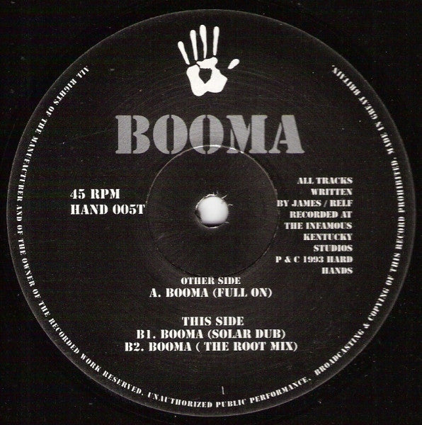 Tracklist: . Other Side, A. Booma (Full On), . This Side, B1. Booma (Solar Dub), B2. Booma (The Root Mix)