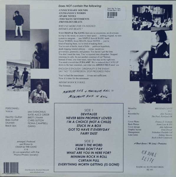 Tracklist: A1. Devitalize, A2. Never Been Properly Loved, A3. I'm A Choice (Not A Child), A4. Stuck In A Box, A5. Got To Have It Everyday, A6. Fairy Dust, B1. Mum's The Word, B2. Crime Don't Pay, B3. What Are You In Here For?, B4. Minimum Rock N Roll, B5. Curtain Pull, B6. Everything Worth Getting (Is Gone)