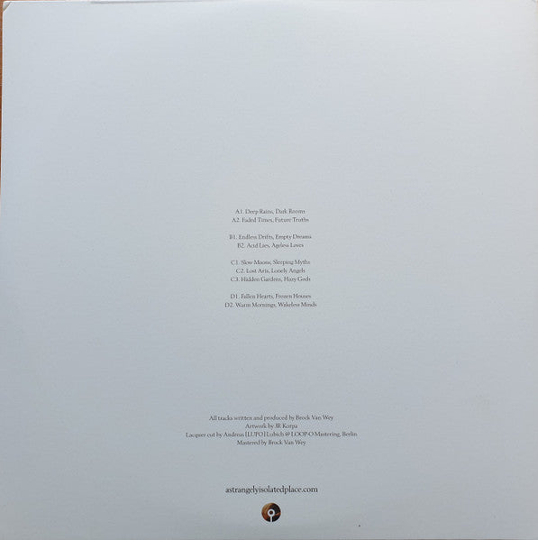 Tracklist: A1. Deep Rains, Dark Rooms, A2. Faded Times, Future Truths, B1. Endless Drifts, Empty Dreams, B2. Acid Lies, Ageless Loves, C1. Slow Moons, Sleeping Myths, C2. Lost Arts, Lonely Angels, C3. Hidden Gardens, Hazy Gods, D1. Fallen Hearts, Frozen Houses, D2. Warm Mornings, Wakeless Minds