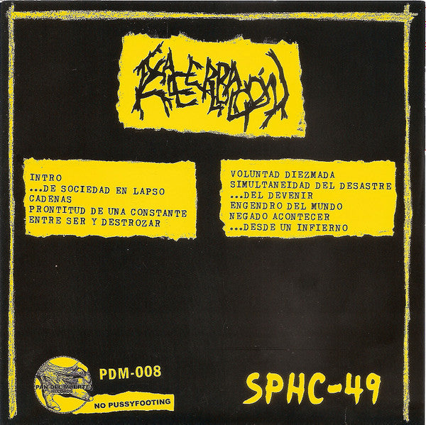 Tracklist: A1. Intro, A2. …De Sociedad En Lapso, A3. Cadenas, A4. Prontitud De Una Constante, A5. Entre Ser Y Destrozar, B1. Voluntad Diezmada, B2. Simultaneidad Del Desastre, B3. …Del Devenir, B4. Engendro Del Mundo, B5. Negado Acontecer, B6. …Desde Un Infierno