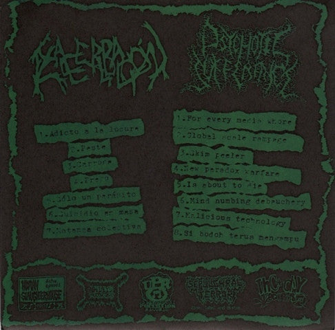 Tracklist: A1. Adicto A La Locura, A2. Peste, A3. Carroña, A4. Preso, A5. Sólo Un Parásito, A6. Suicidio En Masa, A6. Matanza Colectiva, B1. For Every Media Whore, B2. Global Scale Rampage, B3. Skin Peeler, B4. New Paradox Warfare, B5. Is About To Die, B6. Mind Nimbing Debauchery, B7. Malicious Technology, B8. Si Bodoh Terus Mengampu