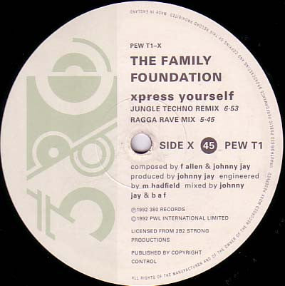 Tracklist: X1. Xpress Yourself (Jungle Techno Remix), X2. Xpress Yourself (Ragga Rave Mix), Y1. Express Yourself (Original Don Mix), Y2. Xpress Yourself (Extended Vocal Mix)