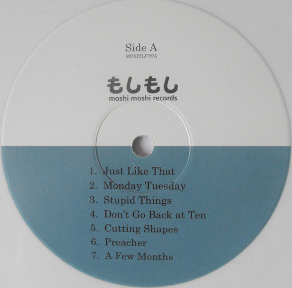 Tracklist: . LP, A1. Just Like That, A2. Monday Tuesday, A3. Stupid Things, A4. Don't Go Back At Ten, A5. Cutting Shapes, A6. Preacher, A7. A Few Months, B8. Earl Grey (Stuck In A Groove), B9. Where Am I Now, B10. Stupid Things (Reprise), B11. Ghosty, B12. Waiting Ages, . 7" Vinyl, A. Trouble, B. Where Am I Now, . Bonus Cover Versions EP, CD-1. In The Light Of The Room, CD-2. All is Equal In Love, CD-3. Anything I Do Is All Right, CD-4. Cristina