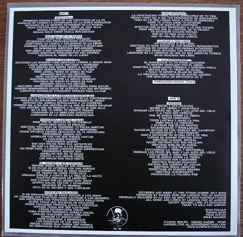 Tracklist: A1. Dogmatico, A2. Mas Alla De Su Razon, A3. Bombas Para La Paz, A4. Caminando De La Direccion Equivocada, A5. Verdadera Amistad Falsa, A6. El Estado Y Sus Carceles, A7. Genocidio Educativo, A8. Fase Depresiva, A9. Llegar A Ser Libre, A10. Machoviolencia, A11. Unreleased Bonus Track, B1. Biocidio