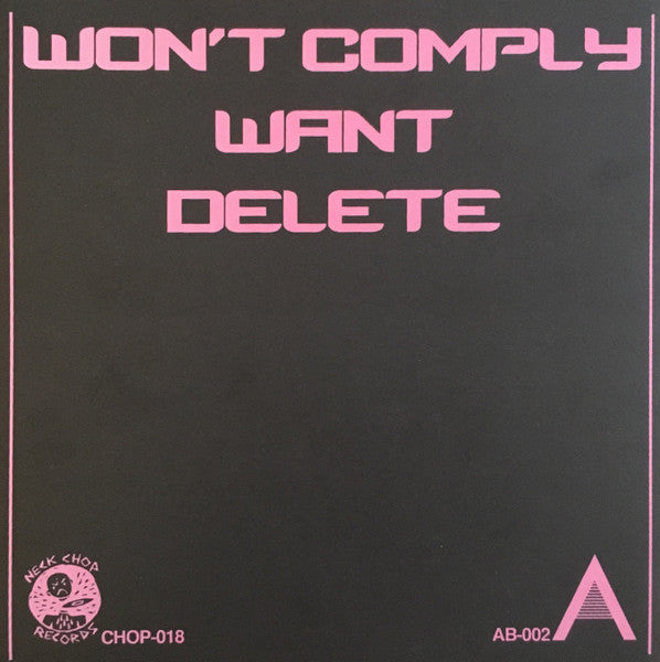 Tracklist: A1. Won't Comply, A2. Delete, B1. Want