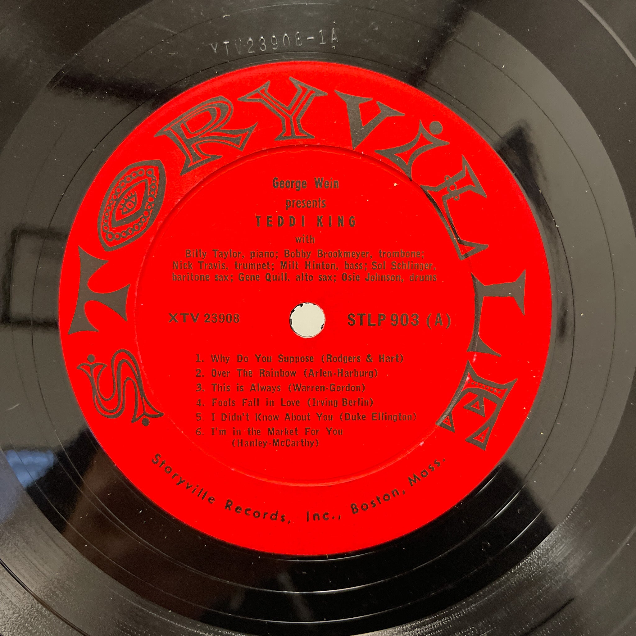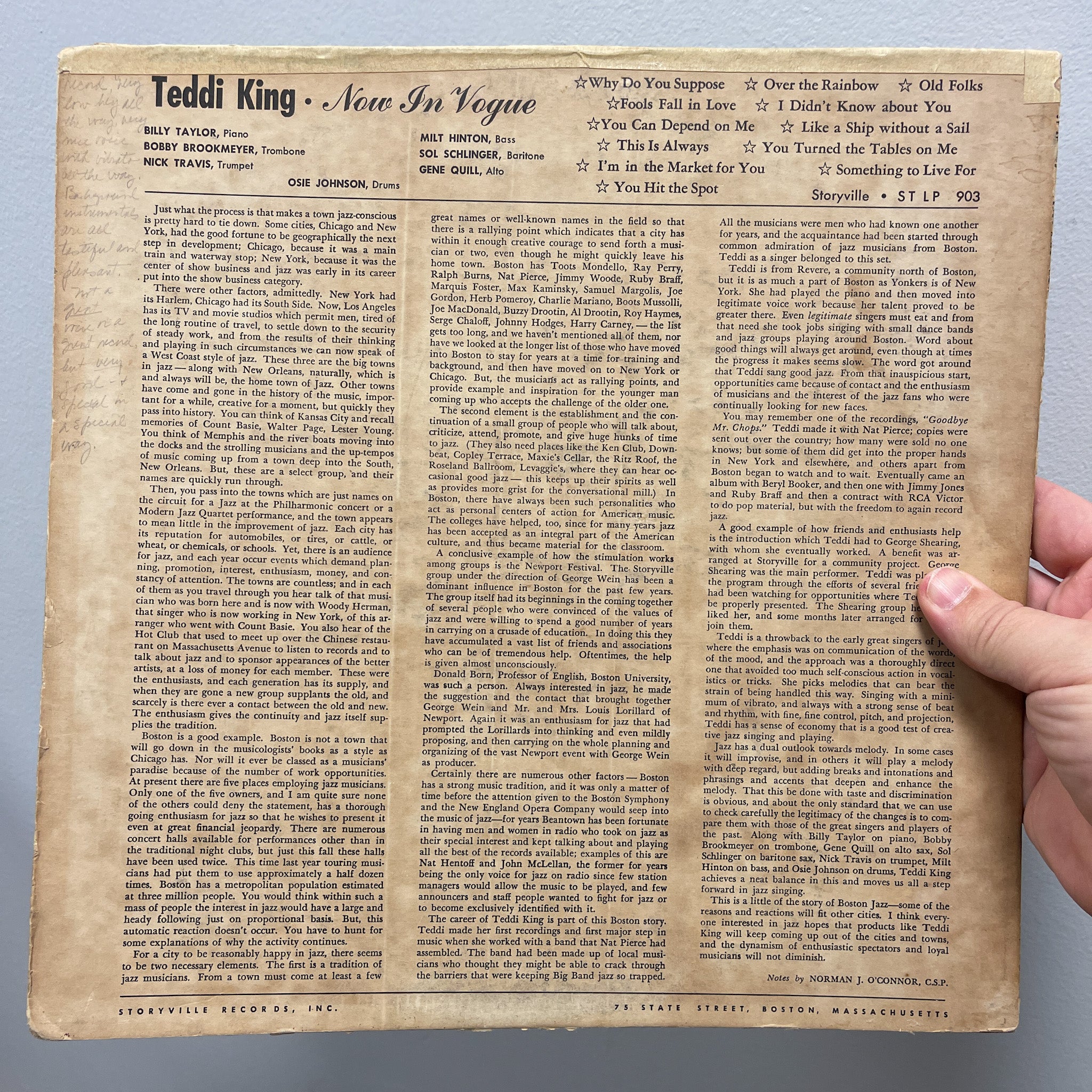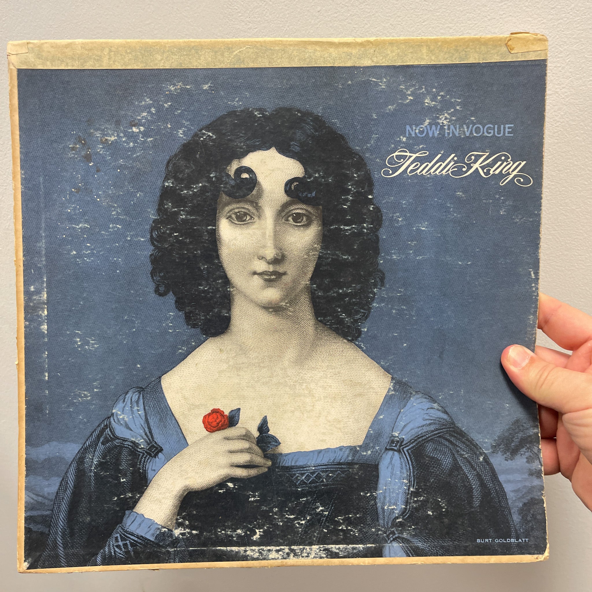 1955 original. Vinyl has some light wear and a few minor scuffs. An ultrasonic bath could probably get this sounding even better. The jacket is in rather rough shape. The front doesn't have terrible shelf wear, but the seams have entirely separated and been reconnected at the top edge with an ugly, old piece of masking tape. I imagine a careful restoration job could help, but it looks rough for now. Back cover is heavily discolored from age and has some writing in pencil.