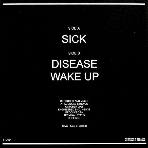 Tracklist: A. Sick, B1. Disease, B2. Wake Up