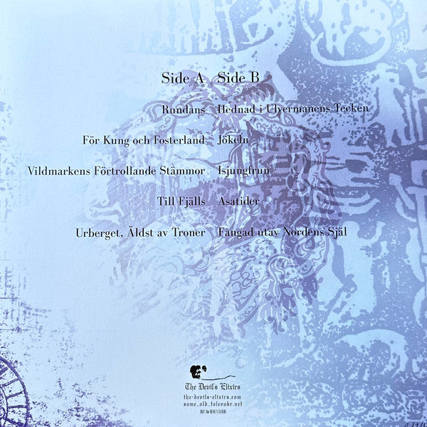 Tracklist: A1. Rundans, A2. För Kung Och Fosterland, A3. Vildmarkens Förtrollande Stämmor, A4. Till Fjälls, A5. Urberget, Äldst Av Troner, B1. Hednad I Ulvermånens Tecken, B2. Jökeln, B3. Isjungfrun, B4. Asatider, B5. Fångad Utav Nordens Själ