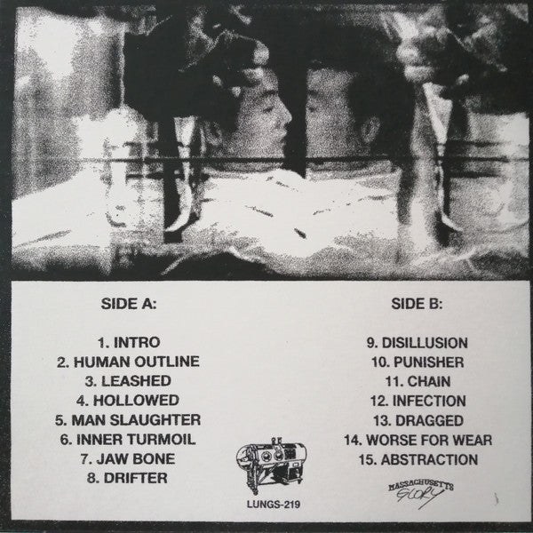 Tracklist: A1. Intro, A2. Human Outline, A3. Leashed, A4. Hollowed, A5. Man Slaughter, A6. Inner Turmoil, A7. Jaw Bone, A8. Drifter, B1. Disillusion, B2. Punisher, B3. Chain, B4. Infection, B5. Dragged, B6. Worse For Wear, B7. Abstraction