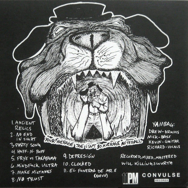 Tracklist: A1. Ancient Relics, A2. No End in Sight, A3. Party Song, A4. Huff-N-Puff, A5. Frye Vs Takayama, A6. Mindfuck Ultra, A7. Make Mistakes, A8. No Trust, A9. Depresión, A10. Clocked, A11. El Funeral De Mr. E (Devo)