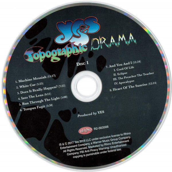 Tracklist: 1-1. Machine Messiah, 1-2. White Car, 1-3. Does It Really Happen?, 1-4. Into The Lens, 1-5. Run Through The Light, 1-6. Tempus Fugit, . And You And I, 1-8. Heart Of The Sunrise, 2-1. The Revealing Science Of God (Dance Of The Dawn), 2-2. Leaves Of Green, 2-3. Ritual (Nous Sommes Du Sòleil), 2-4. Roundabout, . Starship Trooper