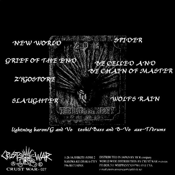 Tracklist: A1. New World, A2. Grief Of The End, A3. Zygospore, A4. Slaughter, B1. Spider, B2. Be Celled And Be Chain Of Master, B3. Wolfs Rain