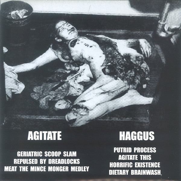 Tracklist: A1. Putrid Process, A2. Agitate This, A3. Horrific Existence, A4. Dietary Brainwash, B1. Geriatric Scoop Slam, B2. Repulsed By Dreadlocks, B3. Meat The Mince Monger Medley