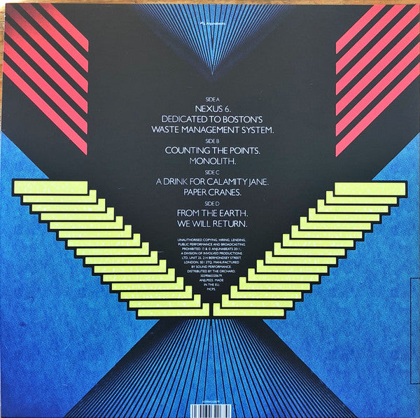 Tracklist: A1. Nexus 6, A2. Dedicated To Boston's Waste Management System, B1. Counting The Points, B2. Monolith, C1. A Drink For Calamity Jane, C2. Paper Cranes, D1. From The Earth, D2. We Will Return