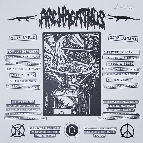 Tracklist: . Side Apple, A1. Coffee Grinder, A2. Subterranean Hooch, A3. Bullshit Hygienist, A4. Mince The Bastard, A5. Daily Grind, A6. Sad Together, A7. Herniated Wisdom, . Side Banana, B1. Precision Grinder, B2. Daily Sleazy Activity, B3. Pick A Fight, B4. Functional Society System, B5. Intelligible Happiness, B6. Bean Mincin', B7. Unrealistic Janitor