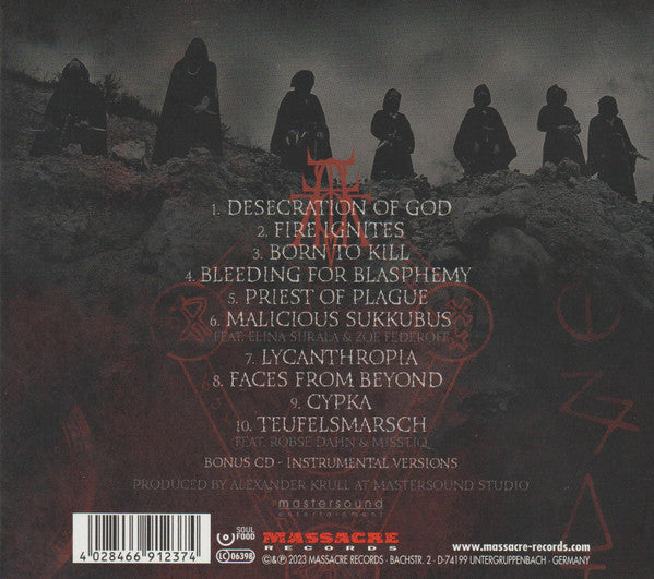 Tracklist: 1-1. Desecration Of God, 1-2. Fire Ignites, 1-3. Born To Kill, 1-4. Bleeding For Blasphemy, 1-5. Priest Of Plague, 1-6. Malicious Sukkubus, 1-7. Lycanthropia, 1-8. Faces From Beyond, 1-9. Cypka, 1-10. Teufelsmarsch, . Instrumental Versions, 2-1. Desecration Of God, 2-2. Fire Ignites, 2-3. Born To Kill, 2-4. Bleeding For Blasphey, 2-5. Priest Of Plague, 2-6. Malicious Sukkubus, 2-7. Lycanthropia, 2-8. Faces From Beyond, 2-9. Cypka, 2-10. Teufelsmarsch