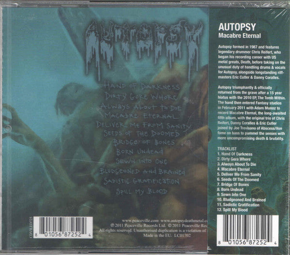 Tracklist: 1. Hand Of Darkness, 2. Dirty Gore Whore, 3. Always About To Die, 4. Macabre Eternal, 5. Deliver Me From Sanity, 6. Seeds Of The Doomed, 7. Bridge Of Bones, 8. Born Undead, 9. Sewn Into One, 10. Bludgeoned And Brained, 11. Sadistic Gratification, 12. Spill My Blood
