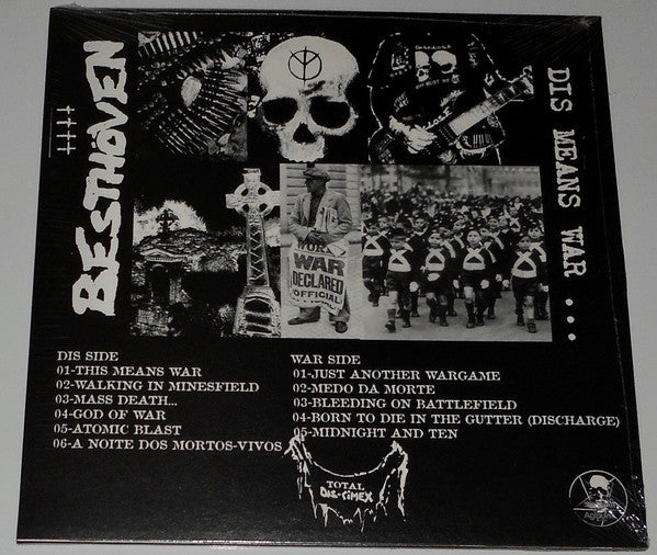 Tracklist: A1. This Means War, A2. Walking In Minesfield, A3. Mass Death..., A4. God Of War, A5. Atomic Blast, A6. A Noite Dos Mortos-Vivos, B1. Just Another Wargame, B2. Medo Do Morte, B3. Bleeding On Battlefield, B4. Born To Die In The Gutter (Discharge Cover), B5. Midnight And Ten