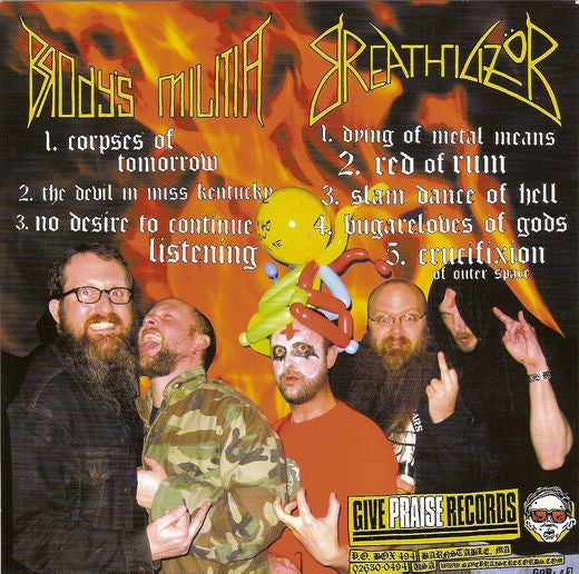 Tracklist: A1. Corpses Of Tomorrow, A2. The Devil In Miss Kentucky, A3. No Desire To Continue Listening, B1. Dying Of Metal Means, B2. Red Of Rum, B3. Slam Dance Of Hell, B4. Bugareloves Of Gods, B5. Crucifixion Of Outer Space