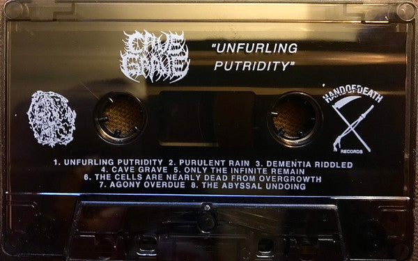 Tracklist: A1. Unfurling Putridity, A2. Purulent Rain, A3. Dementia Riddled, A4. Cave Grave, A5. Only The Infinite Remains, A6. The Cells Are Nearly Dead From Overgrowth, A7. Agony Overdue, A8. The Abyssal Undoing