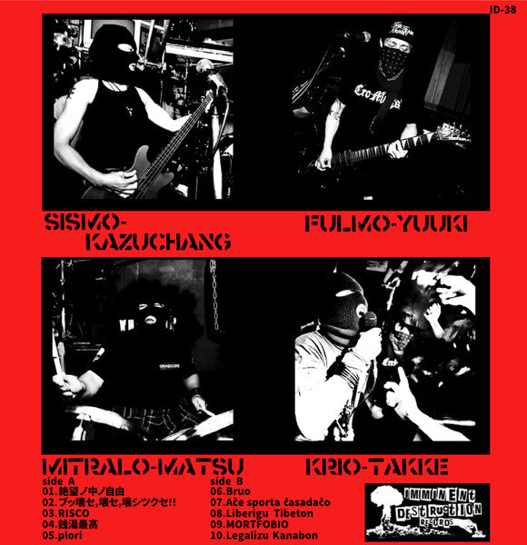 Tracklist: A1. 絶望ノ中ノ自由, A2. ブッ壊セ, 壊セ, 壊シツクセ!!, A3. Risco, A4. 銭湯最高, A5. Plori, B1. Bruo, B2. Ace Sporta Casadaco, B3. Liberigiu Tiberton, B4. Mortfobio, B5. Legalizu Kanbon