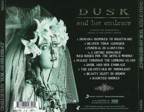 Tracklist: 1. Humana Inspired To Nightmare, 2. Heaven Torn Asunder, 3. Funeral In Carpathia, 4. A Gothic Romance (Red Roses For The Devil's Whore), 5. Malice Through The Looking Glass, 6. Dusk And Her Embrace, 7. The Graveyard By Moonlight, 8. Beauty Slept In Sodom, 9. Haunted Shores