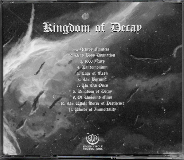 Tracklist: 1. Nekros Manteia, 2. Dead Body Divination, 3. 1000 Years, 4. Pandemonium, 5. Cage Of Flesh, 6. The Burning, 7. The Old Ones, 8. Kingdom Of Decay, 9. Of Unsound Mind, 10. The White Horse Of Pestilence, 11. Winds Of Immortality