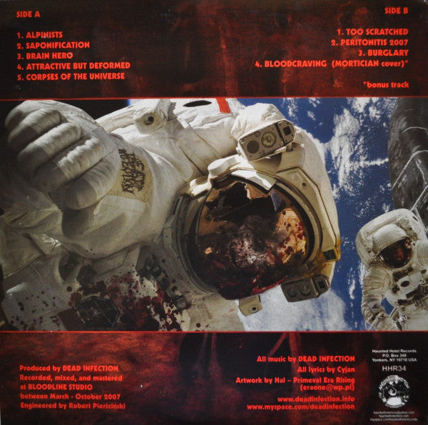 Tracklist: A1. Alpinists, A2. Saponification, A3. Brain Hero, A4. Attractive But Deformed, A5. Corpses Of The Universe, B1. Too Scratched, B2. Peritonitis 2007, B3. Burglary, B4. Bloodcraving