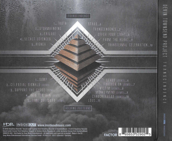 Tracklist: . Transcendence, 1-1. Truth, 1-2. Stormbending, 1-3. Failure, 1-4. Secret Sciences, 1-5. Higher, 1-6. Stars, 1-7. Transcendence, 1-8. Offer Your Light, 1-9. From The Heart, 1-10. Transdermal Celebration, . Holding Patterns, 2-1. Gump, 2-2. Celestial Signals (Demo), 2-3. Support The Cause (Demo), 2-4. Into The Sun (Demo), 2-5. Time Overload (Demo), 2-6. Lexus (Demo), 2-7. Farther On (Demo), 2-8. Victim (Demo), 2-9. Monkey Mind (Demo), 2-10. Canucklehead (Demo), 2-11. Loud
