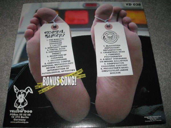 Tracklist: A1. Pre-Bisectal Corrosive Immersion, A2. Lab Rat, A3. Mortuary Wars, A4. Foetal Mush, A5. Cauterization Frenzy, A6. Reception Of Cadavers, A7. Decomposer, A8. Convivial Corpse Disposal Methodology / Severe Catatonic Intersection Of Pathological Activities, B1. Bloatation (Repugnant Refloatation), B2. Cruentous Mess, B3. Forensic Photography, B4. A Brief Discourse On Wound Ballistics, B5. Cooperative Cadaveric Custody, B6. Prosector's Bane: Creutzfeldt-Jakob Disease