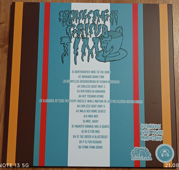 Tracklist: A1. Bakyunsified (Moe To The Gore), A2. Houkago Grind Time, A3. Effortless Regurgitation Of Kyoani Moeblobs, A4. Endless Eight Part 2, A5. Ruptured In Akkariin, A6. Hey Toshino Kyoko, A7. A Manual Of Ways To Occupy Oneself While Waiting In Line For Limited Edition Merch, A8. Endless Eight Part 6, A9. Walk Her Home Gently, A10. War Bad, B1. Moe: Nani?, B2. Makoto Shinkai Has A Goatee, B3. M Is For Moe, B4. Is The Order A Blastbeat?, B5. P Is For Keikaku, B6. Fuwa Fuwa Grind