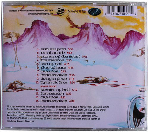 Tracklist: . Endless Pain, 1. Endless Pain, 2. Total Death, 3. Storm Of The Beast, 4. Tormentor, 5. Son Of Evil, 6. Flag Of Hate, 7. Cry War, 8. Bonebreaker, 9. Living In Fear, 10. Dying Victims, . Bonus Tracks (End Of The World), 11. Armies Of Hell, 12. Tormentor, 13. Cry War, 14. Bonebreaker