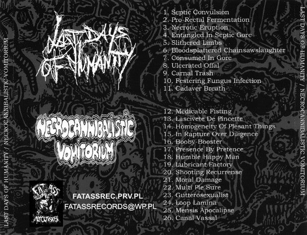 Tracklist: . The Sound Of Rancid Juices Sloshing Around Eindhoven, 1. Septic Convulsion, 2. Pro-Rectal Fermentation, 3. Necrotic Eruption, 4. Entangled In Septic Gore, 5. Slithered Limbs, 6. Bloodsplattered Chainsawslaughter, 7. Consumed In Gore, 8. Ulcerated Offal, 9. Carnal Trash, 10. Festering Fungus Infection, 11. Cadaver Breath, . Moral Damage, 12. Medicable Fisting, 13. Lascivete De Pincette, 14. Homogeneity Of Plesant Things, 15. In Rapture Over Diligence, 16. Booby-Booster, 17. Presence By Pretence, 18. Humble Happy Man, 19. Lubricant Factory, 20. Shooting Recurrense, 21. Moral Damage, 22. Multi Ple Sure, 23. Gutterosexualist, 24. Loop Lamina, 25. Mensis Apocalipse, 26. Canal Vassal