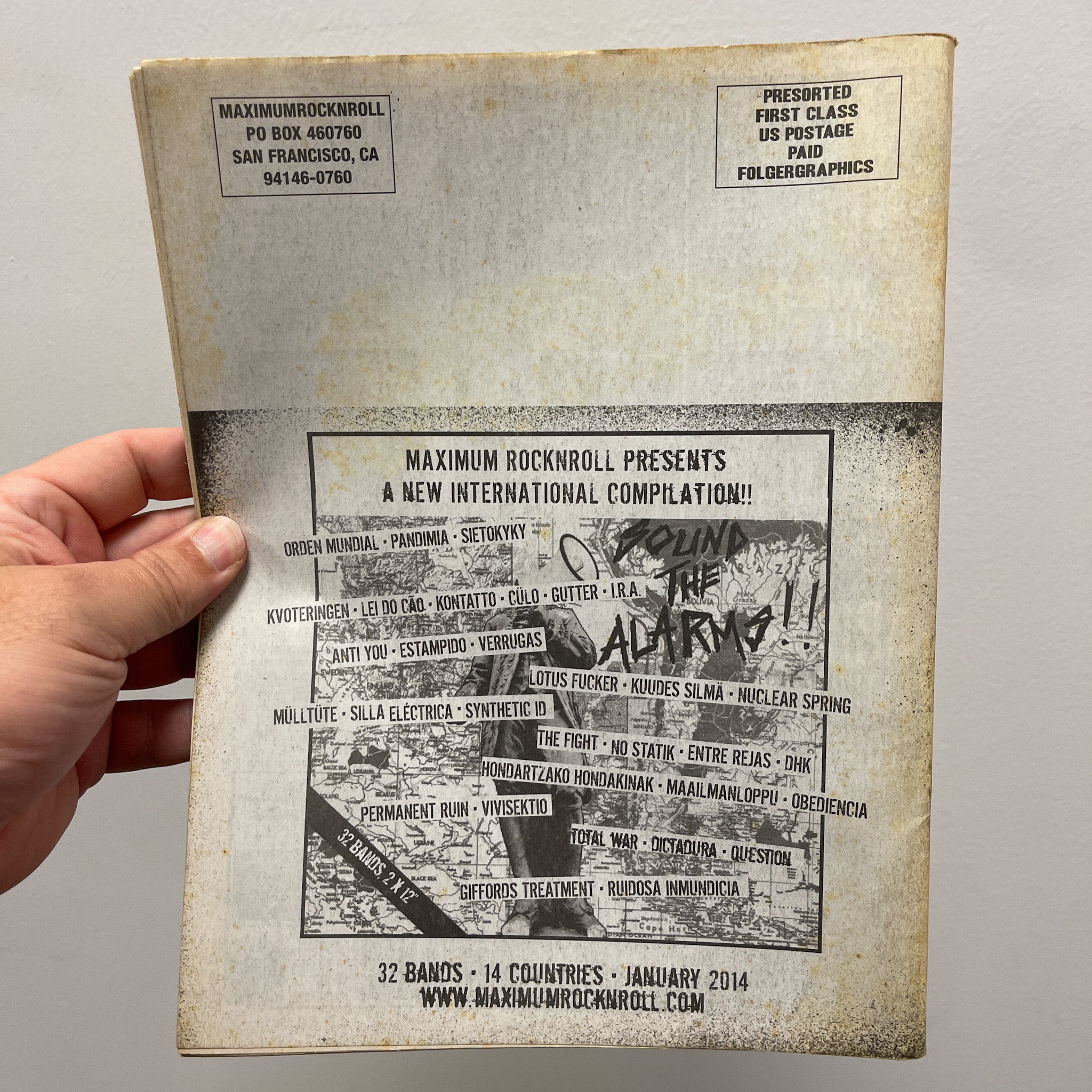 Zine has a little yellowing from age. This issue is queer-focused, including interviews with Shopping, Strong Boys, Priests, and more along with the usual MRR content.