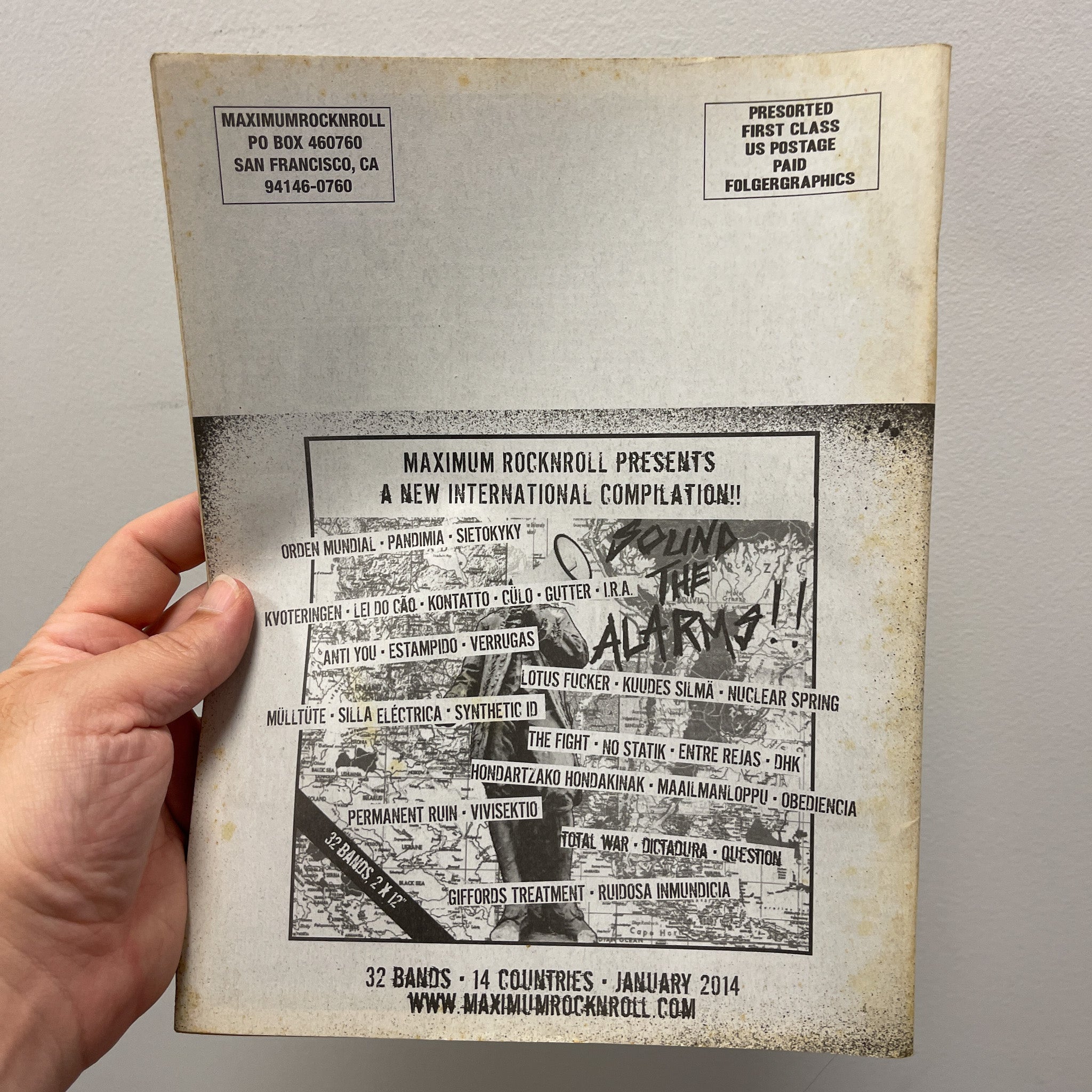 Zine has a little yellowing from age. Features the zine's 2013 top 10 lists, interviews with Nervosas, Mallwakers, and more along with the usual MRR content.