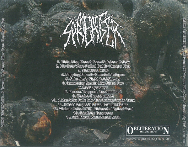 Tracklist: 1. Disturbing Stench From Butchers Below, 2. His Guts Were Pulled Out By Hungry Pigs, 3. Shredded Alive, 4. Popping Sound Of Rectal Prolapse, 5. Saturday's Night Acid Shower, 6. Something Smells Like Silent Fart, 7. Meat Spreader, 8. Frozen. Trapped. Cannibalised, 9. Uterine Derangement, 10. A Man Who Falls Into The Boiling Septic Tank, 11. I Was Tempted To Eat Purulent Scabs, 12. Vicious Retard With Dislocated Spinal Cord, 13. Frostbite Gangrene, 14. Shit Mixed With Rotten Meat