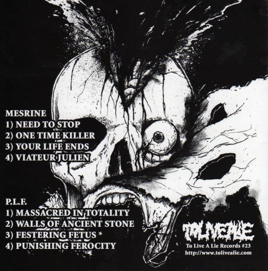 Tracklist: A1. Need To Stop, A2. One Time Killer, A3. Your Life Ends, A4. Viateur Julien, B1. Massacred In Totality, B2. Walls Of Ancient Stone, B3. Festering Fetus, B4. Punishing Ferocity