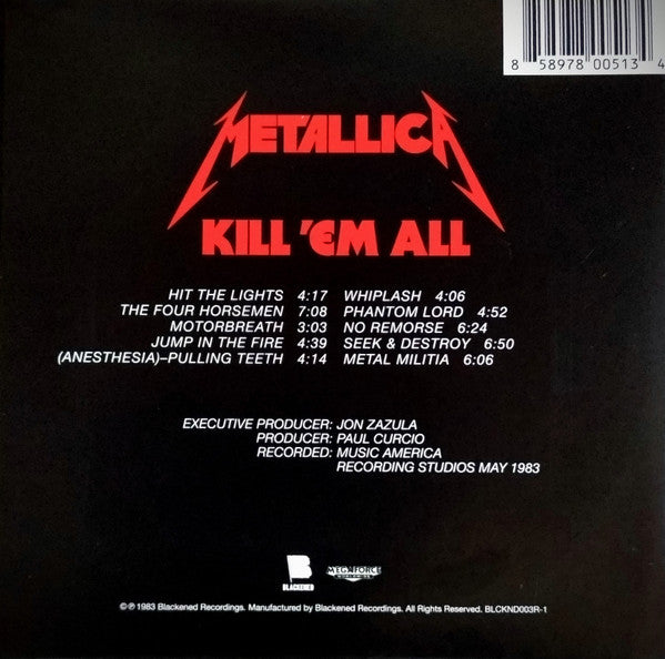 Tracklist: 1. Hit The Lights, 2. The Four Horsemen, 3. Motorbreath, 4. Jump In The Fire, 5. (Anesthesia) – Pulling Teeth, 6. Whiplash, 7. Phantom Lord, 8. No Remorse, 9. Seek & Destroy, 10. Metal Militia