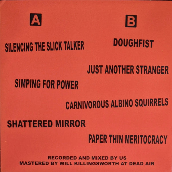 Tracklist: A1. Silencing The Slick Talker, A2. Simping For Power, A3. Shattered Mirror, B1. Doughfist, B2. Just Another Stranger, B3. Carnivorous Albino Squirrels, B4. Paper Thin Meritocracy