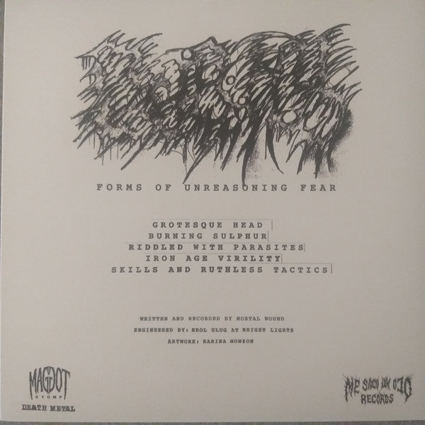 Tracklist: A1. Grotesque Head, A2. Burning Sulphur, A3. Riddled With Parasites, B1. Iron Age Virility, B2. Skills And Ruthless Tactics