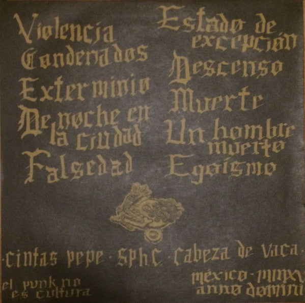 Tracklist: A1. Violencia, A2. Condenados, A3. Exterminio, A4. De Noche En la Ciudad, A5. Falsedad, B1. Estado de Excepción , B2. Descenso, B3. Muerte, B4. Un Hombre Muerto, B5. Egoísmo